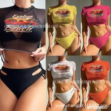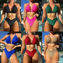 2025 Cross-border New European And American Sexy Bikini Ribbon Lace-up Split Women's Swimwear Bikini
